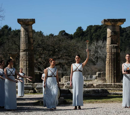 O tradicional momento, que marca o início do revezamento da tocha e a reta final de preparação para o evento, é sempre realizado no santuário de Olímpia, na Grécia, berço dos Jogos da Antiguidade.