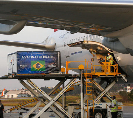 Chega a SP voo com insumos para 10 milhões de doses da CoronaVac