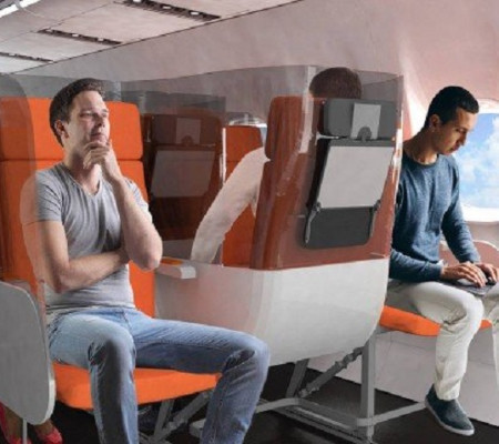 A fabricante italiana apresentou um projeto de assentos que possam tornar mais agradável a ideia de sentar ao lado do seu passageiro potencialmente contagioso.