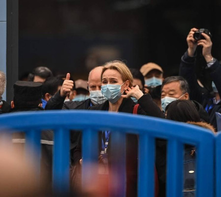 "Visitamos locais muito importantes hoje — primeiro, um grande atacadista e, agora, o mercado de frutos do mar de Huanan. Foi muito informativo e crucial para nossas equipes entenderem a epidemiologia da Covid-19 quando ela começou a se disseminar no fim de 2019", escreveu no Twitter Peter Daszak, um dos membros da missão de investigação.