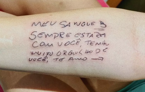 “Eu decidi tatuar esse bilhete na última segunda-feira, mas eu já ia fazer algumas outras tatuagens que eu e a minha mãe passamos com ele”. Uma delas é esse bilhete que o pai da jovem lhe deixou como presente: “Meu sangue B, sempre estarei com você, tenho muito orgulho de você, te amo".