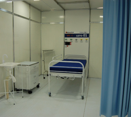 “Fizemos a vistoria dos leitos e estamos ajustando os últimos detalhes junto à empresa responsável pela obra para garantir a segurança dos pacientes e equipes de saúde que serão recebidas nestas estruturas. Concluímos dois módulos do total de 5 que vamos entregar no hospital de campanha do HUT, onde serão instalados 60 leitos de UTIs”, explica o diretor geral do HUT, Rodrigo Martins.