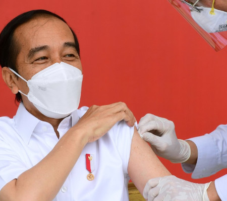 "A vacinação é importante para quebrar a cadeia de transmissão da Covid-19 e dar proteção e segurança a todos os indonésios e ajudar a acelerar a recuperação econômica", disse Jokowi após receber sua injeção.