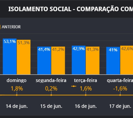 A Prefeitura também está acompanhando os índices de isolamento social através de informações geradas pelas operadoras de telefonia celular. Segundo essa base de dados, que reúne informações de mais de 1,4 milhão de linhas telefônicas, 51,9% das pessoas cumpriram as regras de distanciamento.