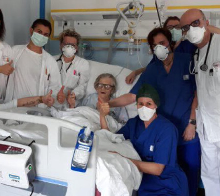 Corsini chegou ao hospital no dia 5 de março e, desde então, estava internada e, segundo a Gazzetta, se tornou o “orgulho da equipe” médica, que tirou uma foto com a nonna.