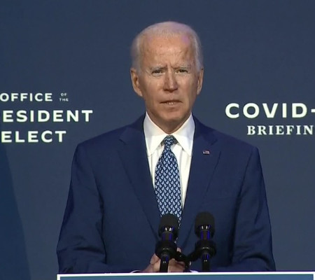 No discurso, Biden ressaltou que só vai tomar posse em 20 de janeiro de 2021 como 46º presidente dos Estados Unidos. Afirmou, no entanto, que sua equipe deve "começar fazendo todo o possível para controlar a Covid-19".