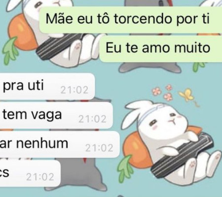 "Sinto muito pela sua perda. Essa foi a última mensagem com a minha mãe antes de ela ir pra UTI. Depois ela só foi piorando. Hoje só restam a saudade e um aperto no coração", escreveu o universitário Kayk Cezarino, de 27 anos.