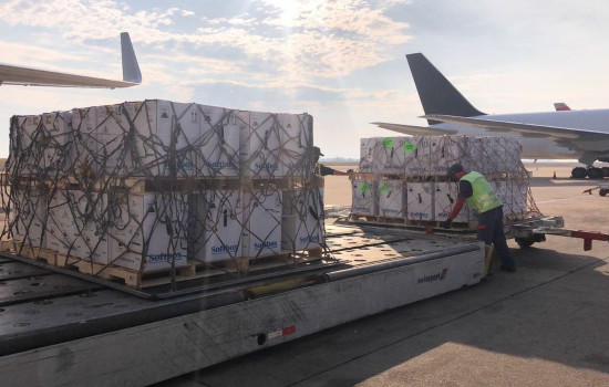 O primeiro lote, com 982.800 doses, chegou às 4h45, e o segundo lote, com 2.632.500 doses, chegou às 6h51, ambos vindos de Amsterdam.