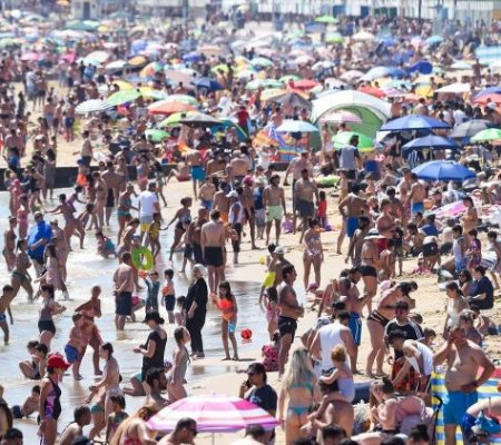 A onda de calor que atingiu a Europa levou os britânicos para as praias em massa, nesta quinta-feira (25), o que fez as autoridades locais chamarem a polícia para dispersar a multidão, em meio à pandemia de coronavírus. No dia mais quente do ano no Reino Unido, a temperatura atingiu 33,3 graus Celsius no aeroporto londrino de Heathrow.