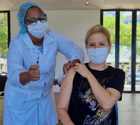 A artista trouxe uma mensagem de esperança nas redes sociais. "Chegou o meu dia! Mais um passinho em direção à imunidade , e principalmente à liberdade! Por ser mulher de 58 anos e ter diabetes, tomei hoje a primeira dose da vacina. Agradeço à Nara Raquel e a todos os profissionais de saúde e cientistas que estão nessa luta. Desejo muita Saúde e vacinas para todos!", comemorou Paula Toller.