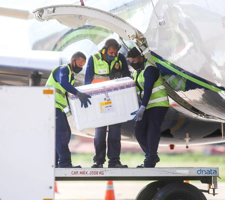 O estado do Piauí recebeu na tarde desta sexta-feira (16), mais 87 mil doses de vacinas da Covid-19. A nova remessa dos imunizantes chegou no Aeroporto Senador Petrônio Portella, na zona Norte de Teresina e foi encaminhada para a rede de frios do estado, para em seguida, serem distribuídas aos municípios.