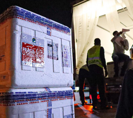 Nesta remessa estão as vacinas para imunização de 10% dos trabalhadores da saúde, que receberam a primeira dose da vacina Oxford/AstraZeneca, da parceria da FioCruz com a Universidade de Oxford.