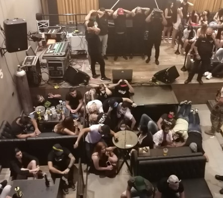 Dentro da balada estavam muitos jovens, a maioria sem máscaras de proteção. Sobre as mesas, foram encontrados diversos narguilés, cujo uso é compartilhado.