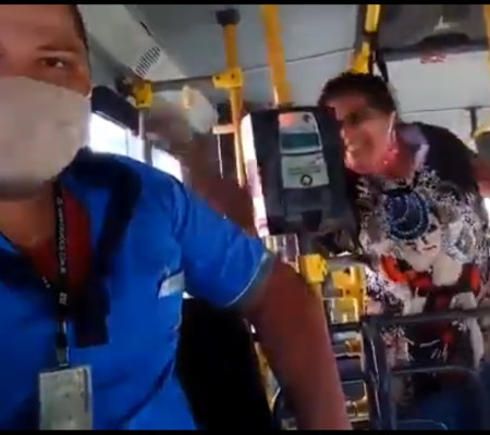 O item é obrigatório em todos os coletivos do Distrito Federal como medida de controle ao novo coronavírus. A mulher, contudo, estaria se recusando a colocar o aparato. A gravação mostra a mulher desprotegida durante toda a discussão.