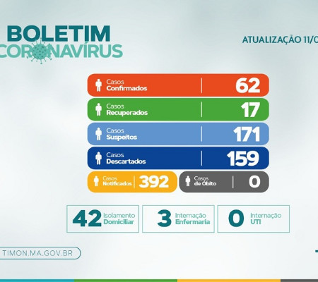 O boletim epidemiológico também aponta que os casos confirmados da doença atingem 27 bairros de Timon. Entre os de maior número de pessoas infectadas com o novo coronavírus estão: Parque Piauí (11), Pov. Bom Viver (6) e Parque União e Santo Antônio (5) casos cada um.