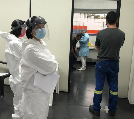 Os testes de diagnóstico podem ser do tipo RT-PCR ou testes sorológicos (testes rápidos). Após a testagem, aquelas pessoas que apresentarem resultados de infecção recente positiva deverão ser afastadas de suas atividades pelo período mínimo de sete dias, podendo ser, eventualmente, prolongado por avaliação médica. Além disso, os sintomas dos trabalhadores deverão ser monitorados diariamente através de aferição de temperatura com utilização de termômetro corporal digital sem toque.