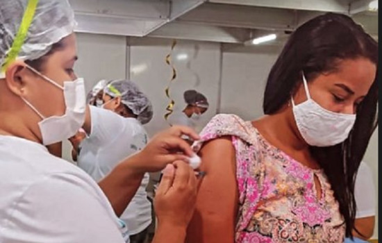 A imunização dessa faixa etária iniciou às 17h, no ginásio Francisco Carlos Jansen. A ação ocorre ao som da banda da Escola de Artes Beija-Flor.