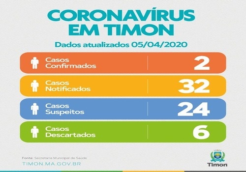O boletim da Secretaria Municipal de Saúde (SEMS) de domingo (05/04) informa que o exame de um caso suspeito de Timon, que foi entregue hoje pelo LACEN de São Luís, testou negativo, por isso houve uma redução no número de casos suspeitos.