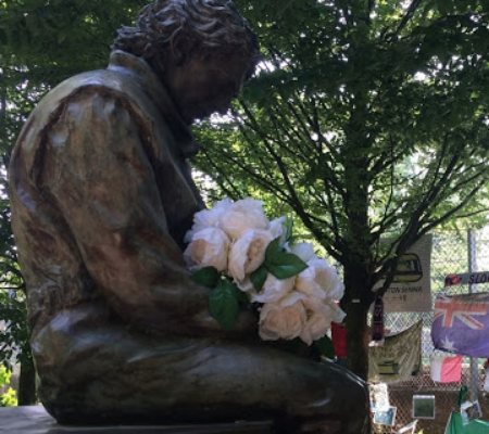 O monumento dedicado ao piloto encontra-se dentro do Parco delle Acque Minerali desde 26 de abril de 1997. Criado pelo artista Stefano Pierotti, fica bem perto da curva Tamburello, onde aconteceu o acidente que tirou a vida do tricampeão mundial no dia 1º de maio de 1994. O local se tornou um ponto de peregrinação, onde fãs do mundo todo vão prestar homenagem e deixam fotografias, mensagens e fotos.