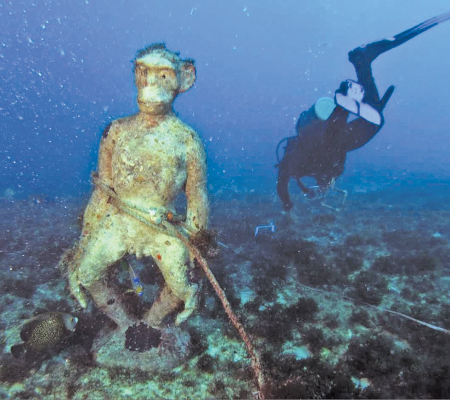 Pesquisadores do Instituto de Ciências do Mar (Labomar) encontraram uma estátua em forma de macaco feita de concreto a 25 metros de profundidade no oceano, na costa de Fortaleza. O achado ocorreu durante mergulho para mapear os diferentes tipos de espécies que vivem no Parque Estadual Marinho da Pedra da Risca do Meio.  Desde o dia 10 de julho, equipes do órgão realizam expedições com assistência da operadora de mergulho Mar do Ceará. Até agora, foram realizados seis mergulhos entre 17 e 30 metros de profundidade. O objetivo é identificar e quantificar espécies no fundo do mar e aferir temperatura, oxigênio e salinidade através de coletas de água.