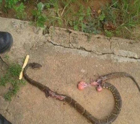 Um agricultor trabalhava com o trator na comunidade de São Miguel – Machadinho – quando avistou uma jararaca, de aproximadamente 1 metro, morta. Despertado pela curiosidade de a cobra estar mais “grossa” do que tradicionalmente uma jararaca é, ele abriu a serpente e contabilizou 12 filhotes no seu interior.