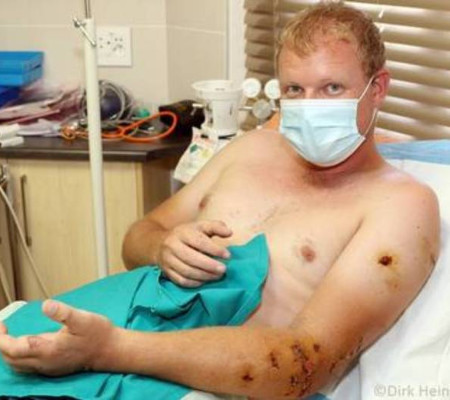 Seguiu-se uma viagem de três horas até o hospital mais próximo, a 80 quilômetros de distância, na cidade de Maun, antes de Gotz ser transportado de avião para Windhoek ( Namíbia), onde mora. Gotz ficou com 16 marcas profundas de mordidas no braço esquerdo, nos ombros e na cabeça.