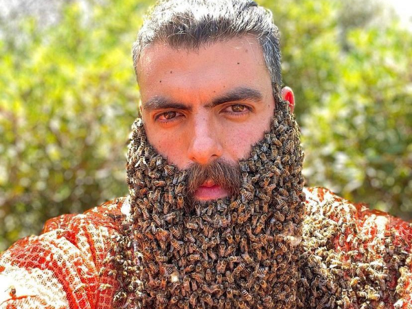 Nas imagens disponibilizadas no Instagram e TikTok, Johny Abou Rjeily está manipulando centenas de abelhas, que chegam a pousar (aos montes) sobre a sua barba. Um dos vídeos já tem mais de 666 mil visualizações.