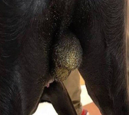 Mas sobre os testículos! O saquinho do cão recebe uma fina camada de xarope de milho e depois a purpurina é aplicada. Vale purpurina azul, rosa, dourada, prateada...