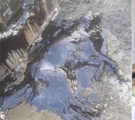 Não se sabe se ela caiu ou foi jogada no piche, que é usado para asfaltamento.