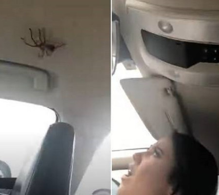 A cena ocorreu no último domingo (22/11). As ocupantes do carro estavam indo a um casamento. Uma delas grita ao perceber a presença do aracnídeo de grande porte: "Oh meu Deus!"