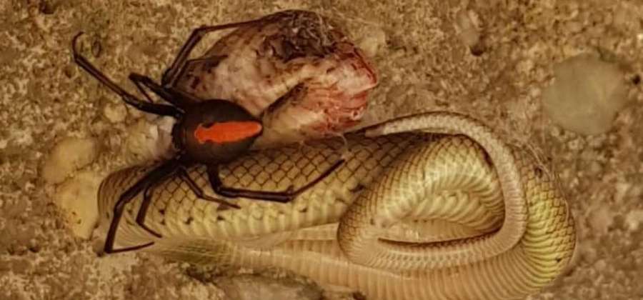 Por incrível que pareça, ver aranhas capturando cobras não é uma coisa tão incomum. Essas aranhas fêmeas são maiores que os machos e crescem cerca de um centímetro de comprimento. Elas são pretas com um traço vermelho ou laranjado que é bastante característico e fica em suas costas. Já os machos menores são castanho-claro com marcas brancas ou amarelas.