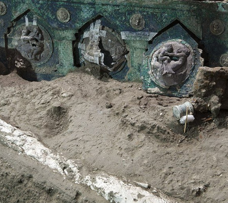 De acordo com os pesquisadores, a carruagem de quatro rodas quase perfeitamente preservada feita de ferro, bronze e estanho foi encontrada "em excelente estado" no pórtico da Villa, em frente ao estábulo onde, em 2018, já tinham sido descobertos restos de cavalos petrificados. "É uma descoberta extraordinária para o avanço do conhecimento do mundo antigo", afirma Massimo Osanna, diretor do Parque Arqueológico.