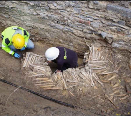 Arqueólogos do estúdio de restauração Ruben Willaert, na Bélgica, foram os responsáveis por uma assustadora descoberta nos arredores de Gante, cidade portuária ao noroeste do país. Enquanto exploravam a catedral de Saint-Bavo, os pesquisadores encontraram paredes feitas com ossos humanos, principalmente os das coxas e da canela de adultos. Para completar o cenário, também foram achados crânios destruídos entre as construções, além de esqueletos completos encontrados a um nível acima da macabra descoberta. As informações são da Revista Galileu.