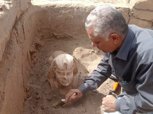 Autoridades egípcias anunciaram a descoberta de uma miniesfinge "sorridente", nesta segunda-feira (06), que pode representar o imperador romano Claúdio, que governou entre os anos 41 a 54 d.C.