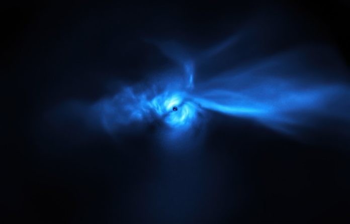Esta imagem, capturada pelo instrumento Sphere montado no Very Large Telescope (VLT) do Observatório Europeu do Sul (ESO), mostra o disco em torno da SU Aur com detalhes sem precedentes. Eles incluem as longas correntes de poeira que se encontram ligadas ao disco.