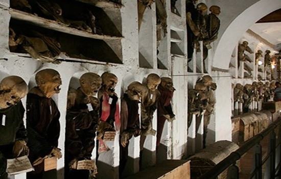Nesse lugar, você pode ficar cara-a-cara com mais de 8 mil corpos pendurados! Os monges capuchinhos tinham a tradição de mumificar seus mortos, e assim esses corpos foram se acumulando e passando a ficar expostos nas catacumbas.