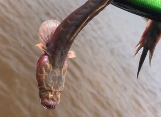 Esse tipo de peixe-verme é visto raramente pelos humanos, porque seu habitat natural é dentro d'água e afundado na lama, por isso o peixe estranho causou tanto espanto em quem estava apenas se divertindo no lago.