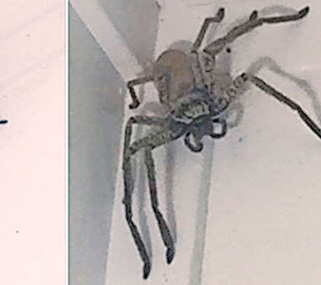 Laree Clarke voltou para casa, em Queensland (Austrália) na terça-feira (30/7) quando se deparou com uma convidada nada desejada: uma gigantesca aranha-caçadora no teto da sala. Horrorizada e amedrontada, Laree postou fotos do aracnídeo em um grupo no Facebook pedindo ajuda. "Há alguém que possa remover isso da minha casa? Agora!", escreveu.
