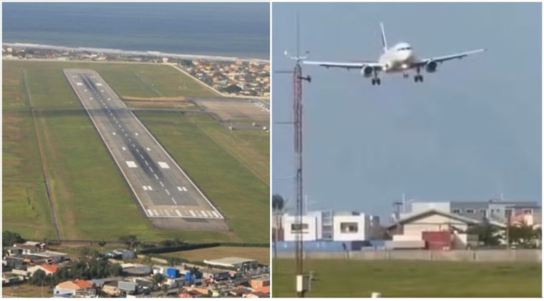 Um avião comercial foi flagrado pousando “de lado” no aeroporto de Navegantes, no Litoral Norte de Santa Catarina, durante fortes rajadas de vento. A cena, registrada na última quarta-feira (5), chamou atenção nas redes sociais e foi confirmada pela Motiva, concessionária responsável pelo terminal aéreo.