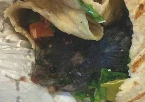 Steven Henderson estava com um amigo em um restaurante em Nova York, nos Estados Unidos, quando de repente viu a cabeça de um rato morto em seu wrap.