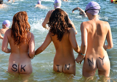 Centenas de banhistas entraram pelados em uma praia da Austrália no evento anual "Sydney Skinny". O intuito do evento este ano é quebrar o recorde mundial para o maior número de mergulhadores nus no oceano.