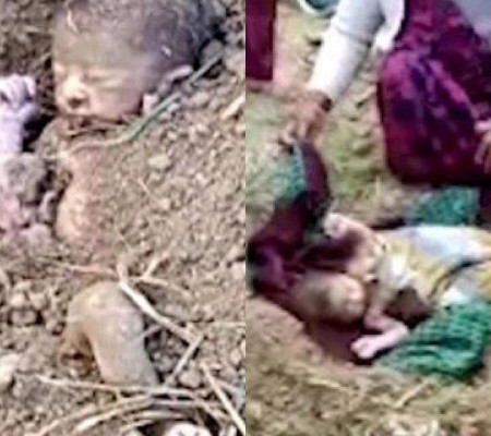 Um bebê abandonado e enterrado vivo foi salvo após nesta semana por um trabalhador rural da região de Khatima (Uttarakhand, Índia) passar pelo local e ver parte do rosto da criança no meio da terra. Não se sabe quanto tempo o bebê ficou enterrado na cova rasa.