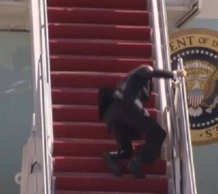 Biden cai três vezes em escada ao embarcar no Air Force One; Vídeo