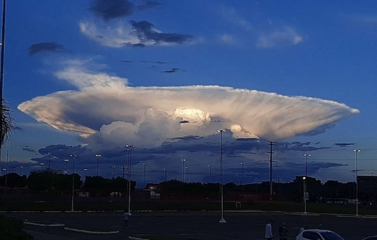 Os moradores de Brasília se surpreenderam, no final da tarde desta terça-feira (18), com uma formação de nuvens diferente e que rendeu diversas fotos que circularam na internet. O motivo? A forma de um cogumelo que se parece muito com uma bomba atômica.