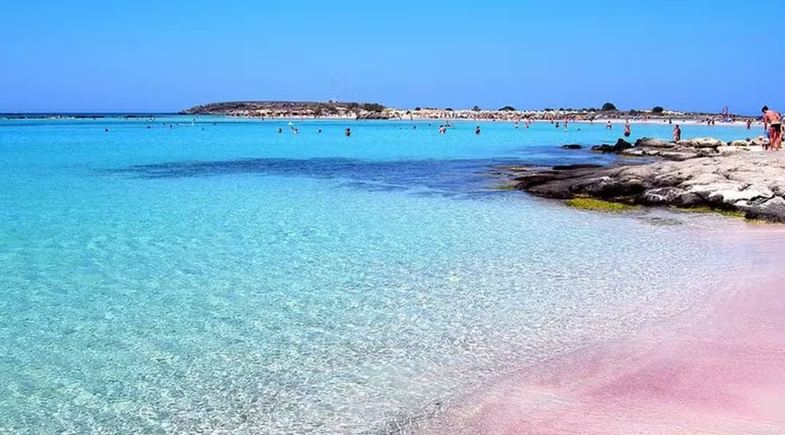 Um dos cartões-postais da ilha de Creta, Elafonissi é famosa pela areia em tons rosados, fenômeno que varia conforme o clima e a época do ano. Mesmo quando a cor aparece mais suave, o local se destaca pelas águas transparentes.