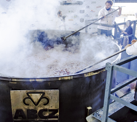 Cinco chefs e uma equipe de 20 ajudantes passaram quase 12 horas preparando um cozido gigantesco de 4.778 quilos de carne durante o encerramento das comemorações da 85ª ExpoZebu, que marcou os cem anos da ABCZ (Associação Brasileira dos Criadores de Zebu). O evento foi realizado em Uberaba (MG). A panela utilizada para o refogado, feita especialmente para a ocasião, pesa 1.340 quilos e tem mais de um metro de altura. Mais de 10 mil pessoas experimentaram o prato.