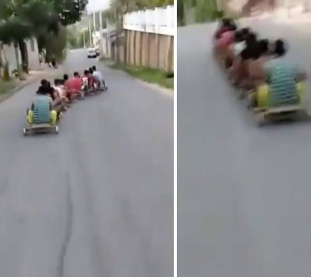 Um vídeo que mostra crianças brincando em um carrinho de rolimã gigante se tornou viral nas redes sociais. Com informações do Metro.