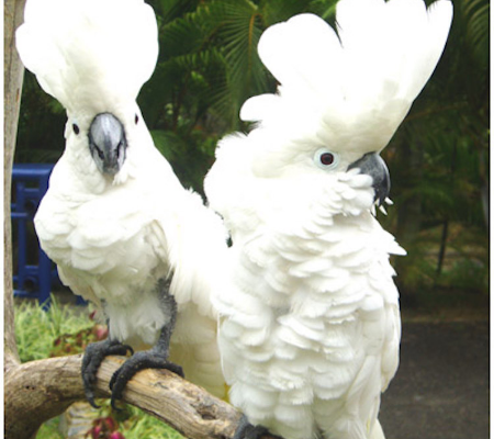 As cacatuas são da família dos papagaios e possuem dois dedos apontando para frente e dois para trás. Dessa maneira, elas conseguem utilizar os pés como os seres humanos usam as mãos e, por isso, são considerados excelentes alpinistas. Bem, neste caso, também excelentes causadoras de balbúrdia e destruição.