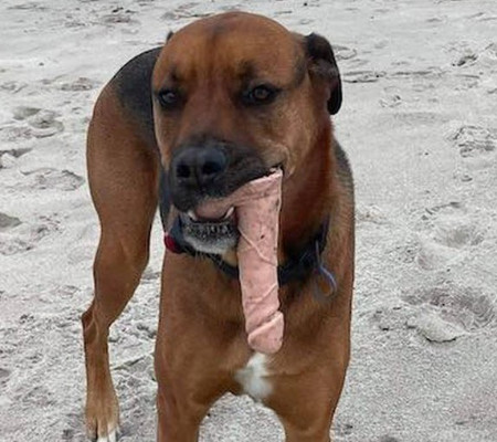 As fotos foram compartilhadas em um grupo de Facebook local e viralizou em pouco tempo, com muitas pessoas se divertindo com a situação e algumas agradecendo que o dildo foi encontrado por um cachorro e não por uma criança.