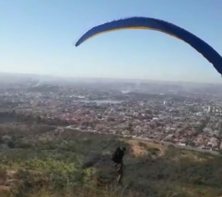 Um vídeo que circula nas redes sociais flagrou o momento que algumas pessoas que esperavam para saltar de parapente em Serra da Santa Helena, em Minas Gerais, levaram um susto nesta semana. As imagens mostram que um cão se aproxima de um homem prestes a saltar, e acaba ficando preso na mochila dele. O homem salta e o cachorro acaba voando por alguns segundos. As informações são do IG.